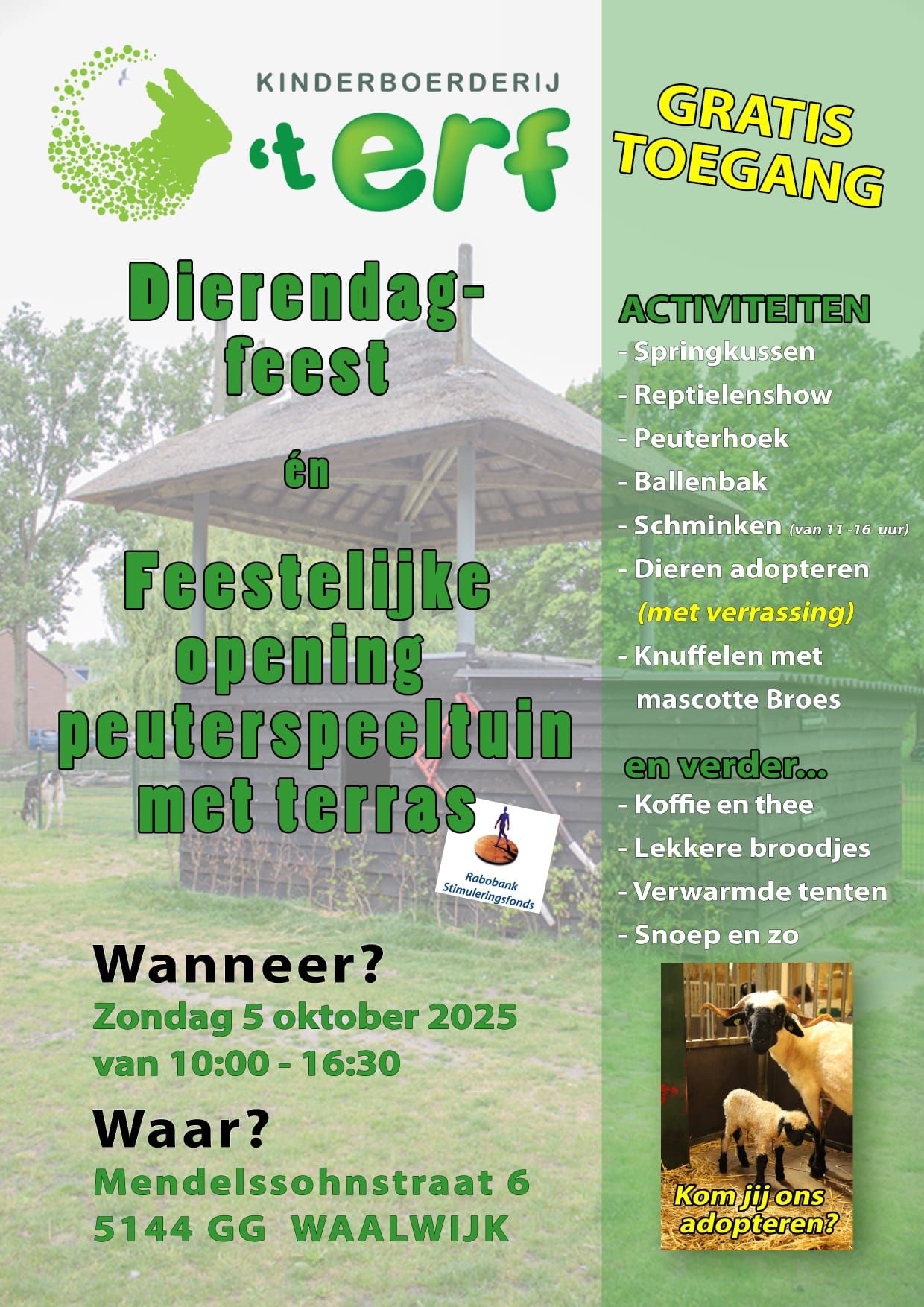 🐾 Op zondag 5 oktober – van 10:00 – 16:30 uur – bruist Kinderboerderij ’t Erf in Waalwijk van de gezelligheid!